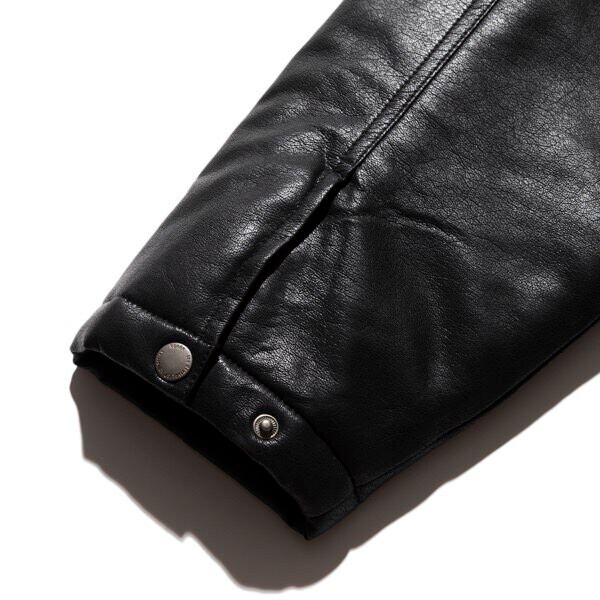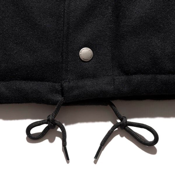 袖やポケット口にはマットな質感のシンセティックレザーを採用したメルトンコーチジャケットです。