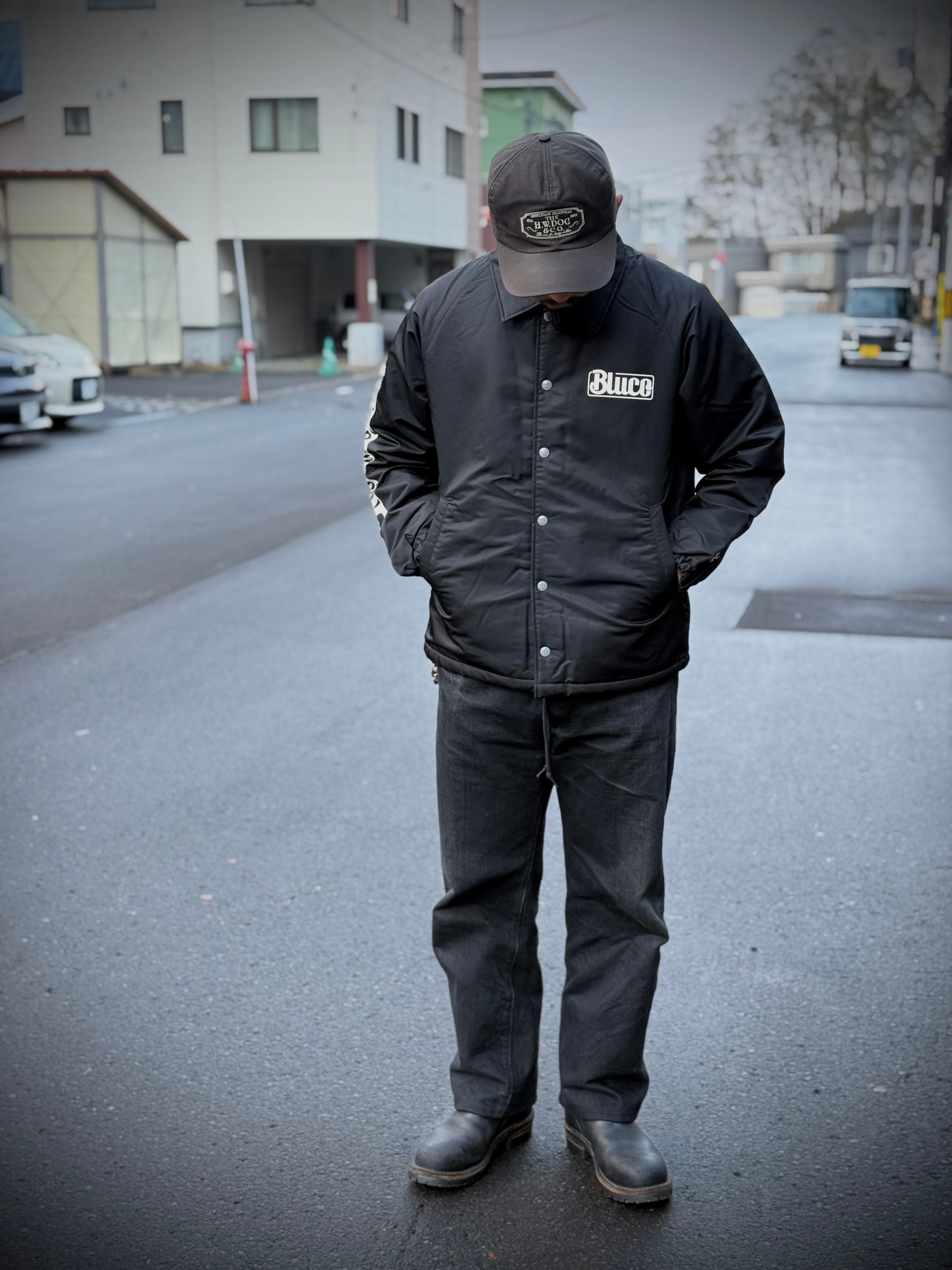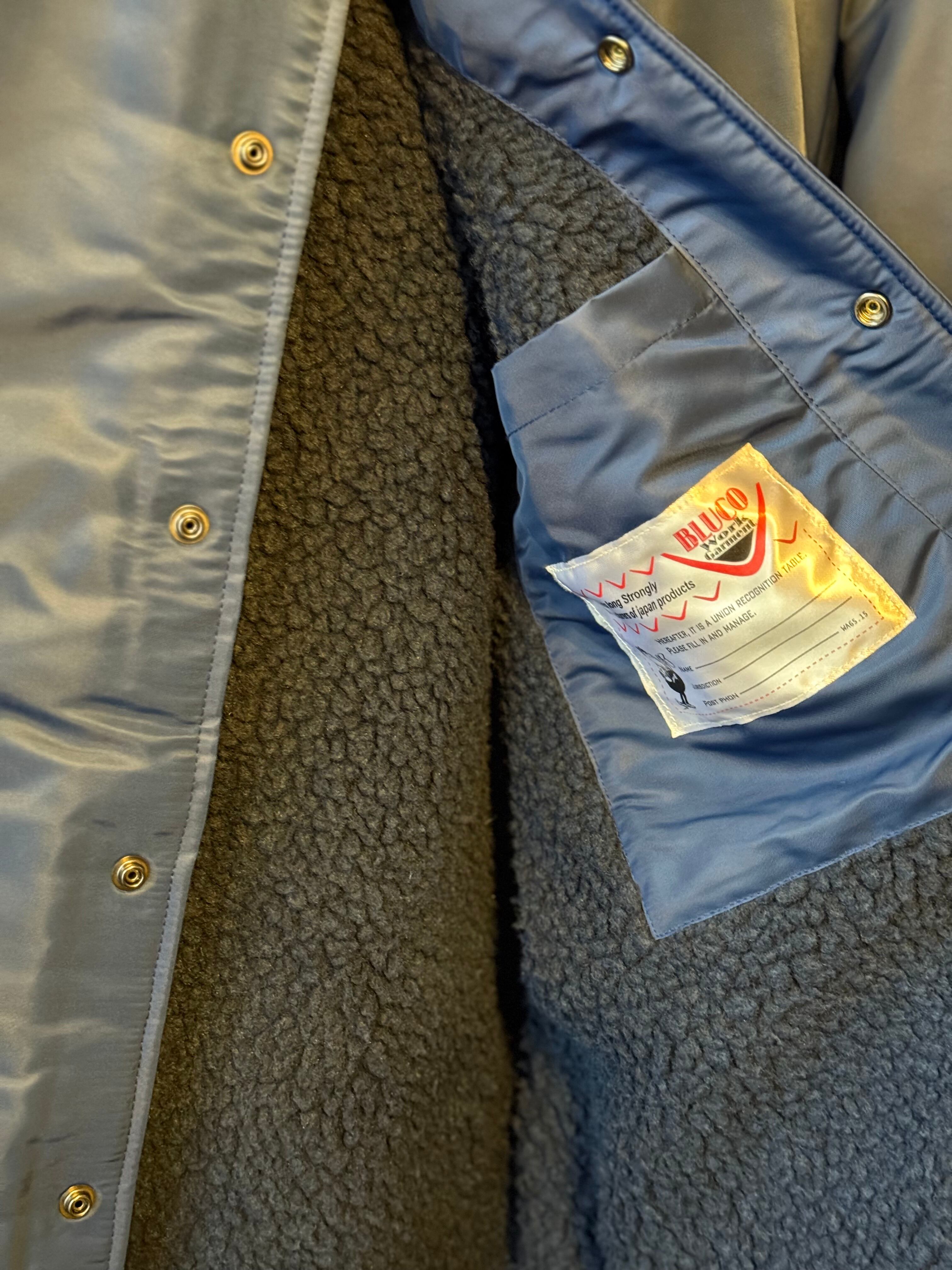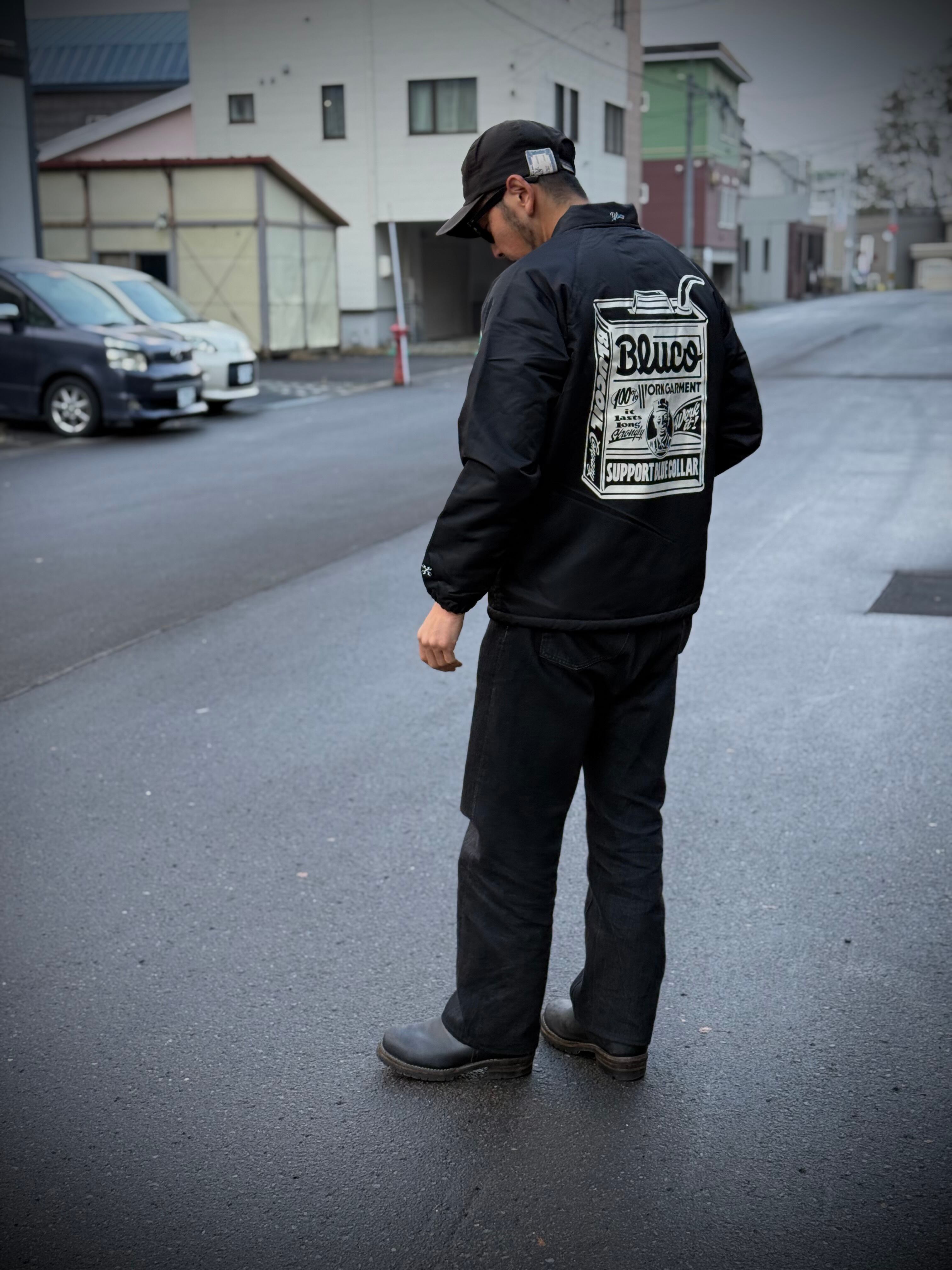 定番のボアコーチジャケットをベースにしたコラボレーションモデル。仙台を拠点に活動するペインティングアーティスト【JACK-O' ART WORKS】による、描き下ろしのOIL缶アートを背面に大胆にプリントした特別仕様です。繊細かつどこか懐かしいビンテージテイストの作風を得意とし、アパレルブランドとのコラボレーションや、店舗サイン、ウォールアートなど幅広いジャンルで活躍。今後のBLUCOにおけるリコメンドアーティストとして、注目の存在です。
