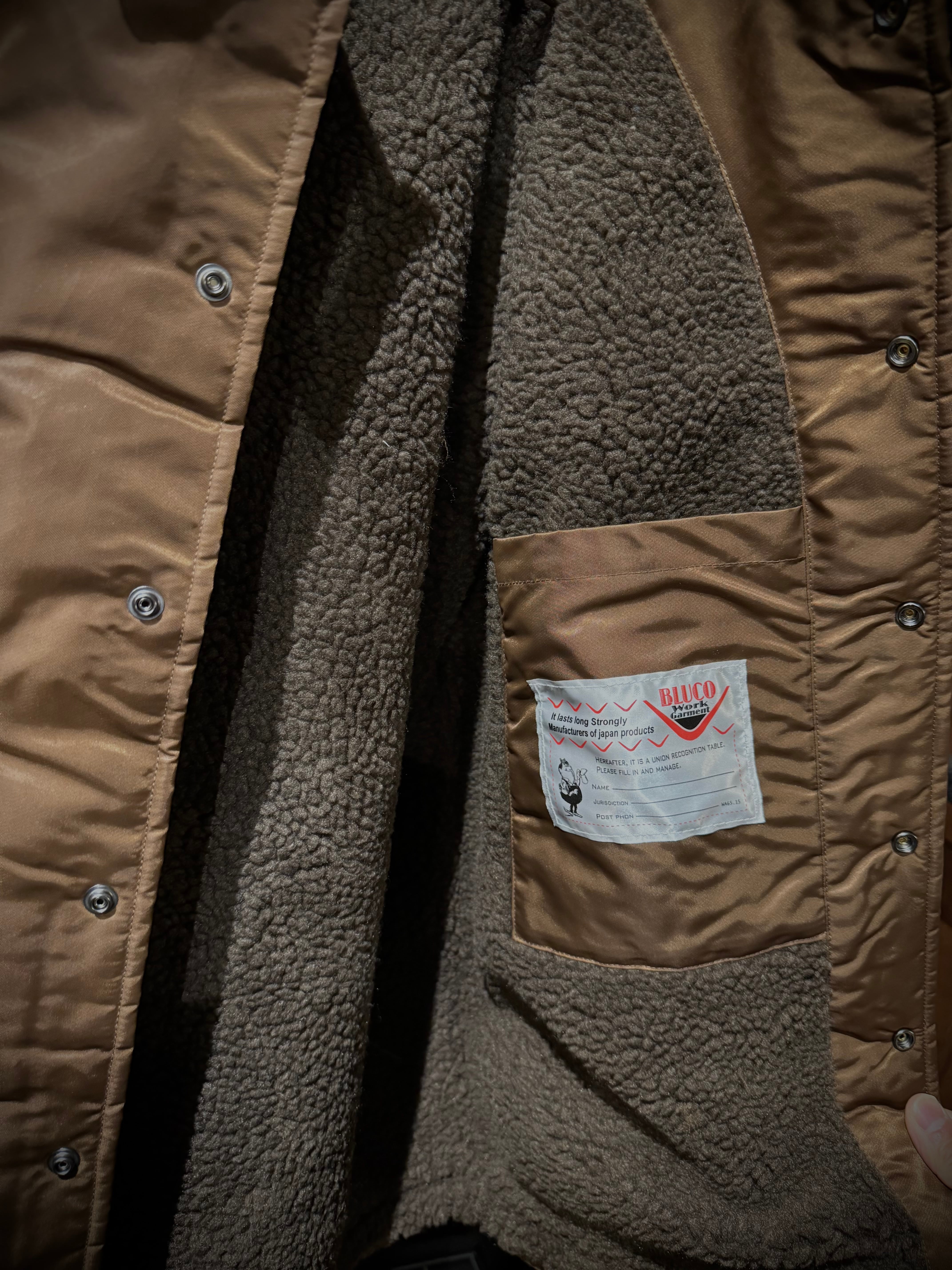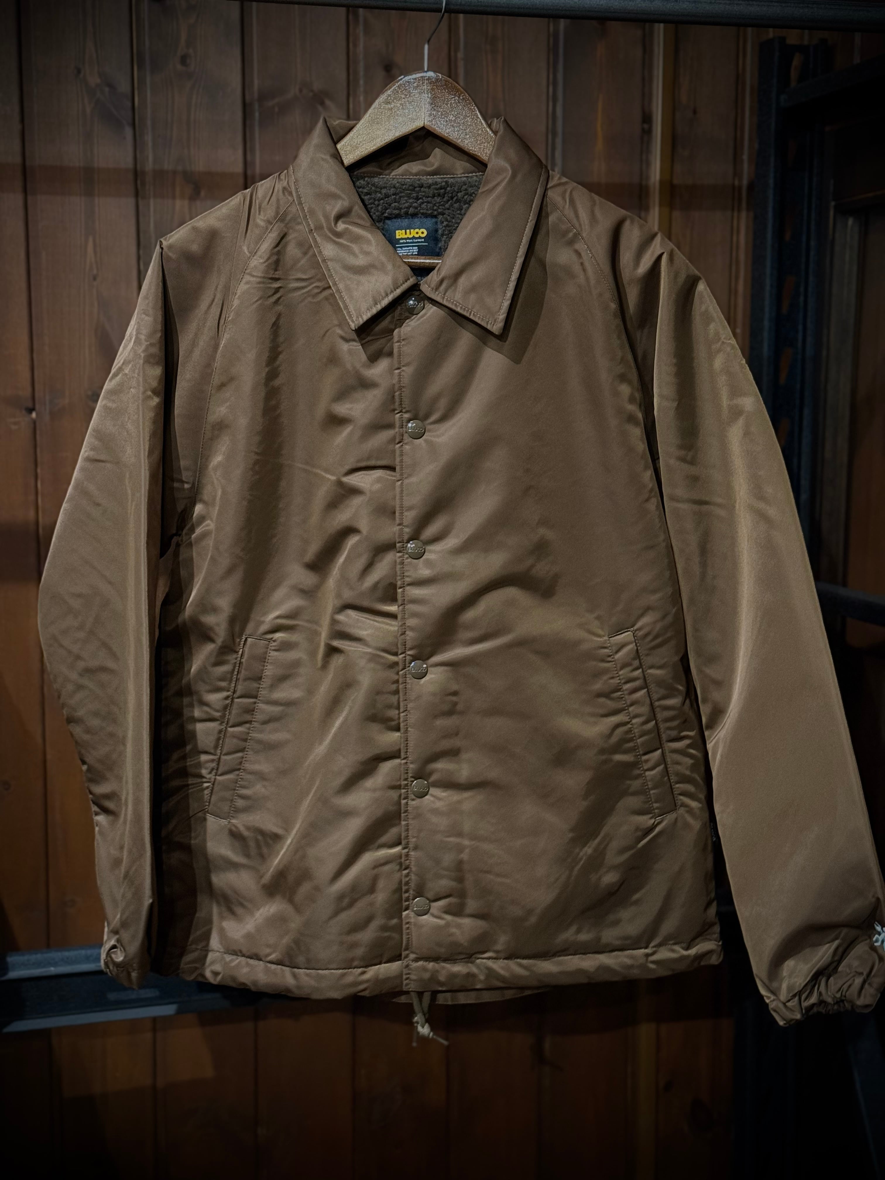 アップデートされたボアコーチジャケットが今季も登場。表地をヘビーナイロンツイルに変更し、防風性と防寒性をさらに強化しました。シンプルなディテールと動きやすさを兼ね備え、会社やモーターチームのユニフォーム用プリントベースとしても高い支持を集めているモデルです。