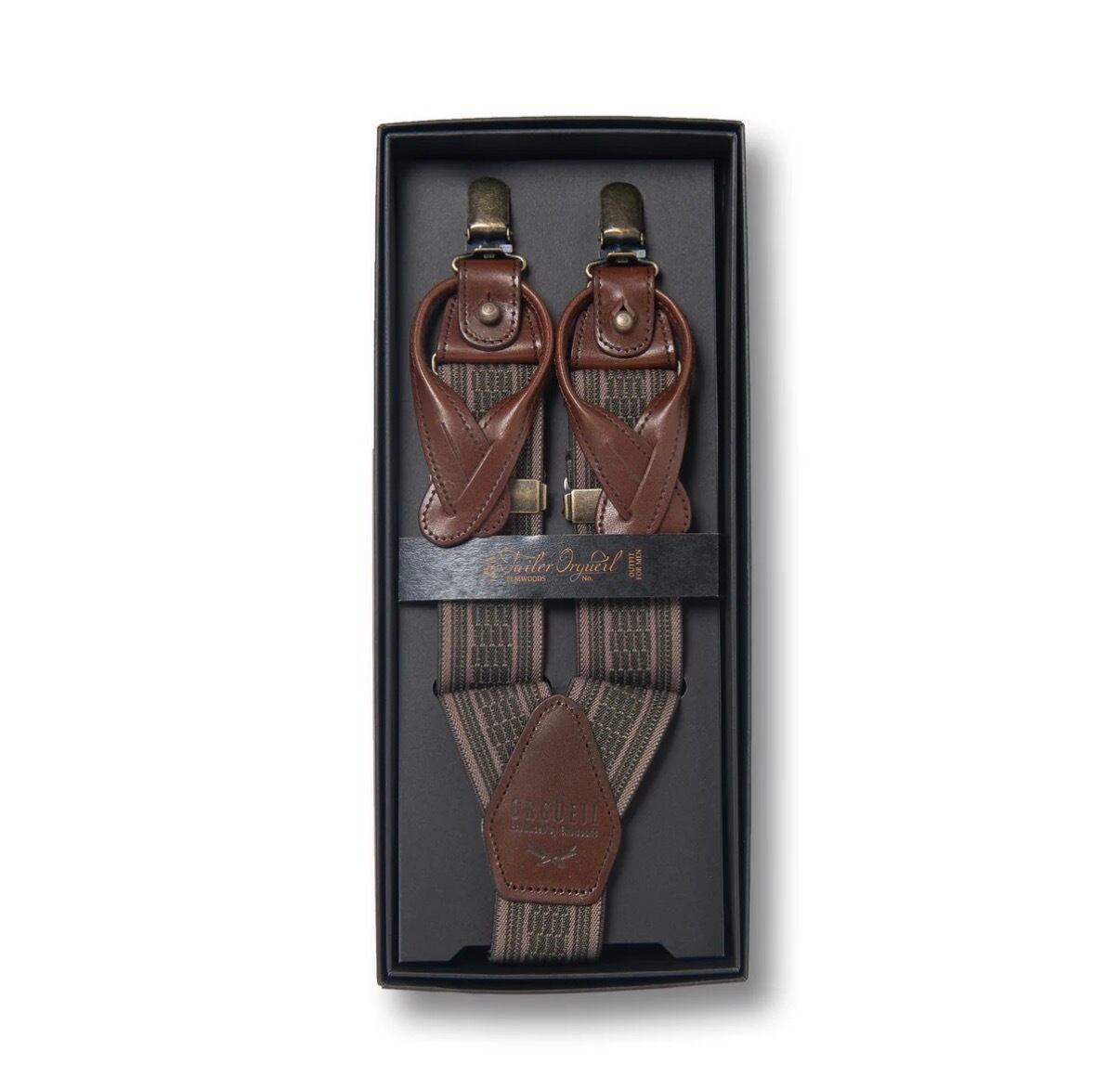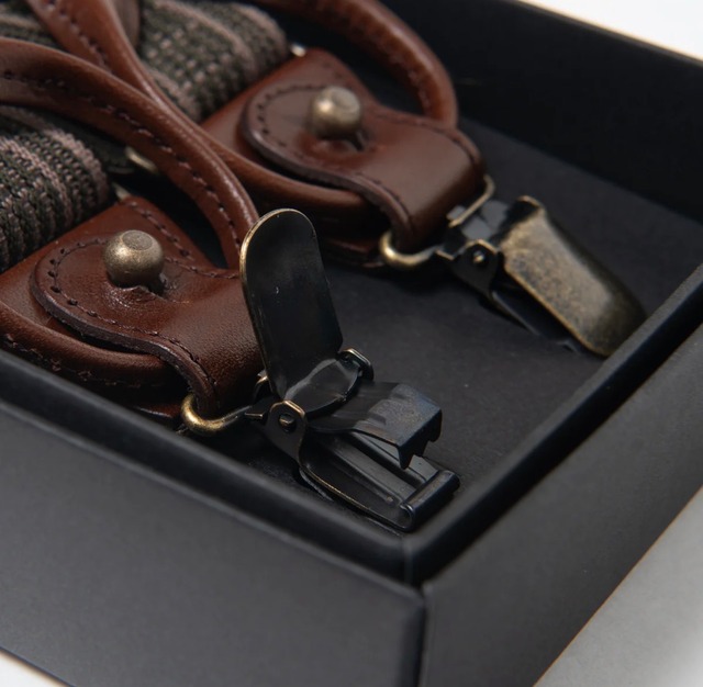 ミリタリーサスペンダーでも今回は柄のある素材を基にデザインされたサスペンダーで、サスペンダーボタンにもクリップ止めにも対応できるのでとても使いやすいのも特徴です。カジュアルなコーディネートにも合わせやすいので、クラシックな装いをお楽しみください。