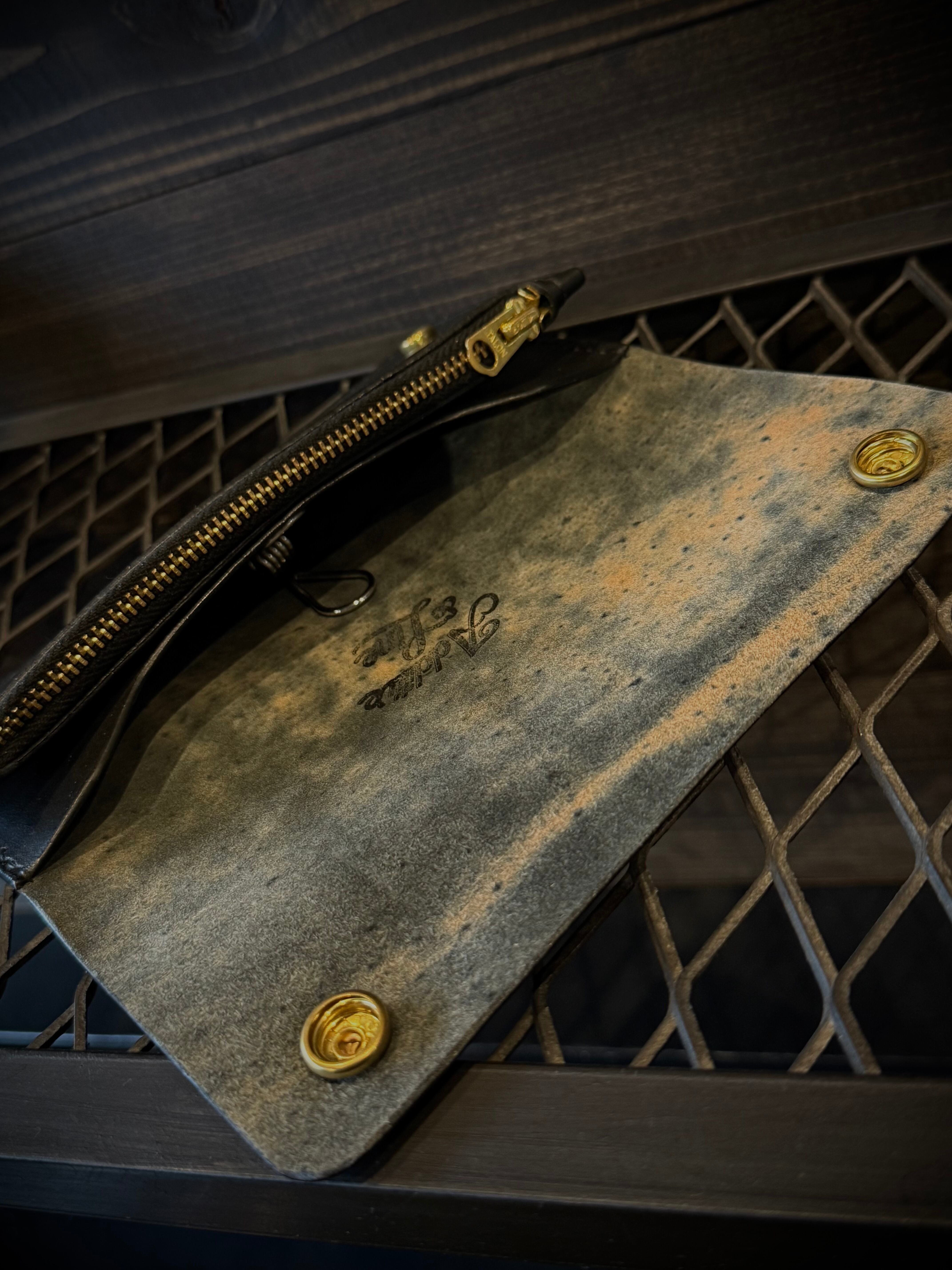 製作過程でつく細かいキズ、シミやヌメ革特有のシワ、トラ、ムラ、キズ等が有る場合がありますが、それも個性、味と捉えていただければと思います。
